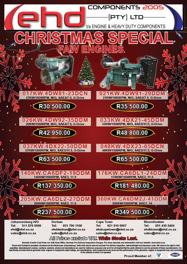 Manufacturer's names, numbers, symbols, photos and descriptions are used for reference purposes only and it is not implied that the parts referred to are the products of those manufacturers. It is specifically recorded that all generator sets, engines or equipment output ratings, per specifications, were measured at sea level and the performance of the generator, engine or equipment may vary according to the altitude at which it is operated
